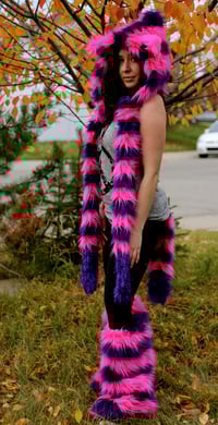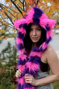 Our new and improved Cheshire Kitty Hood! Accented with our Purple Sparkle Fur!