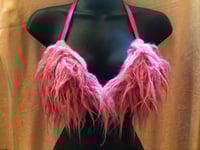 The fun & fuzzy bra that everyone will want to touch! This bikini style top ties at the neck and back. One size fits most, bra sizes A-D.